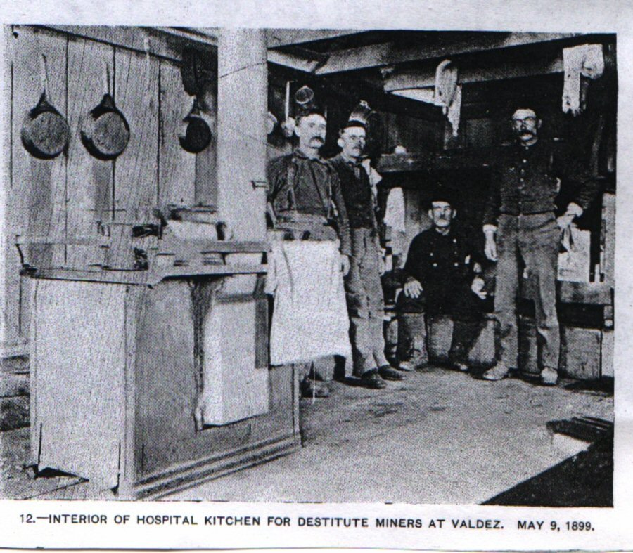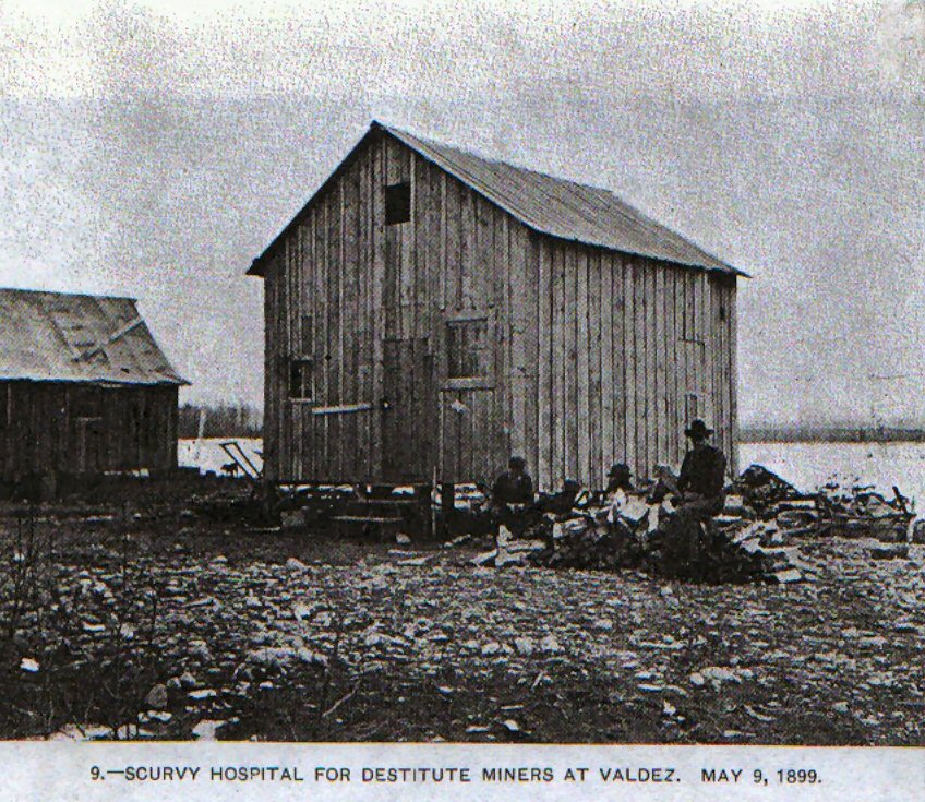 The expedition’s report includes numerous black and white photographs. Illustrated: the Scurvy Hospital for Destitute Miners at Valdez. Document 3874, 56th Congress, 1st Session, Senate Document 306. |
