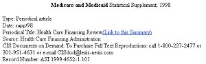 Some records contain the phrase Link to This Summary. The record below contains the abstract to the Medicare and Medicaid Statistical Supplement. Link to This Summary refers to the abstract of its parent publication, Health Care Financing Review.