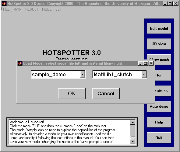 You are prompted to input the geometry file and material file. The left name is the geometry file name; the right one is the material file name. Please click