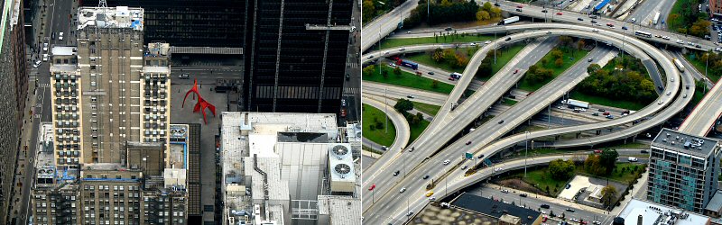 Left: The "Flamingo" sculpture. Right: The I-94 & I-290 interchange.