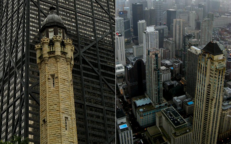 Left: The Water Tower. Right: A tall skinny building. I'm pretty sure those turquoise rectangles on some of the building tops are swimming pools.