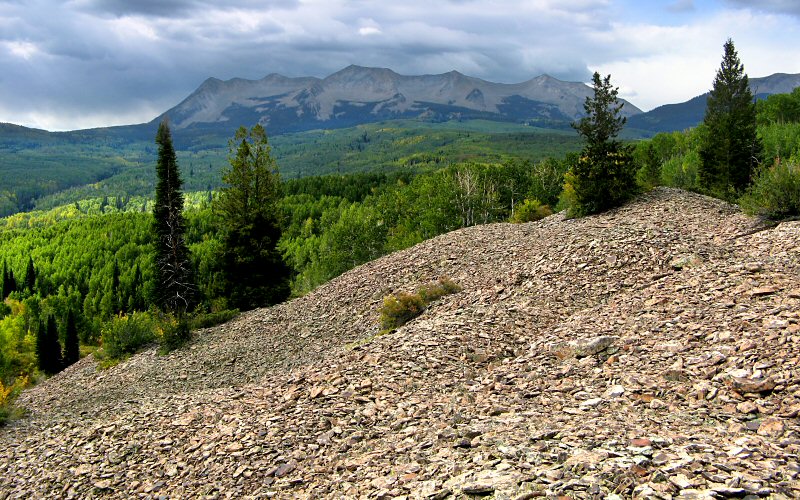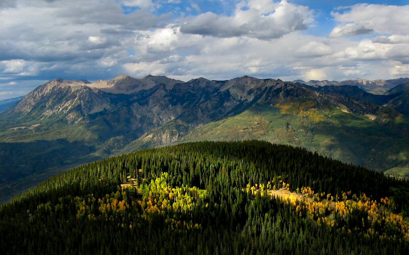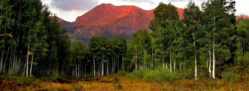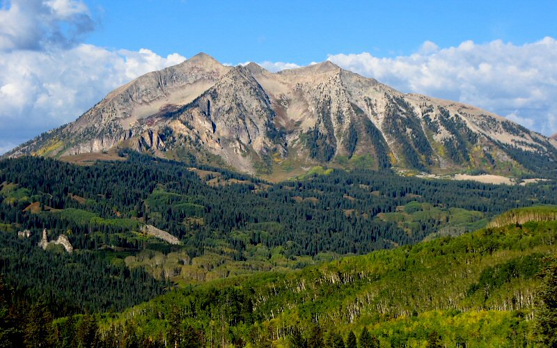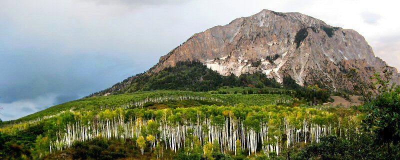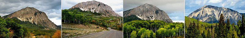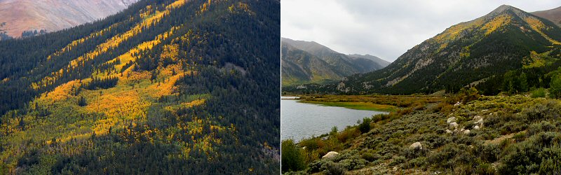 Left: Part of the Anthracite Range from Ohio Pass. Right: Aspens.