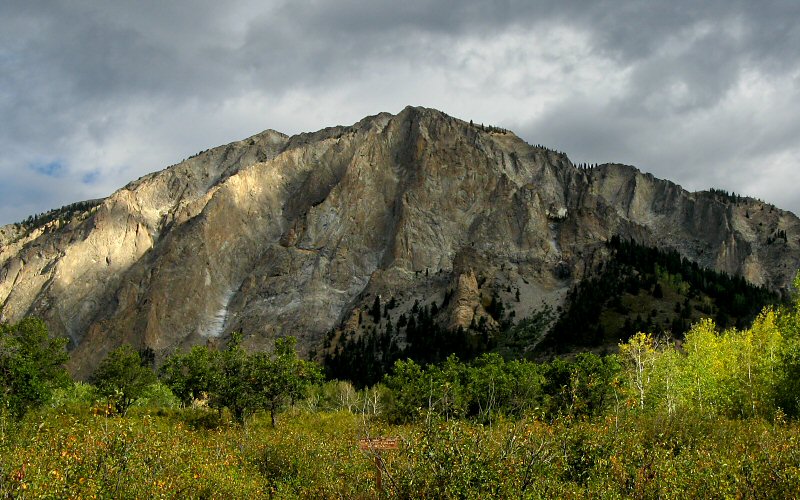 A yellow patch on Ragged Mountain, and the distant Capitol Peak.