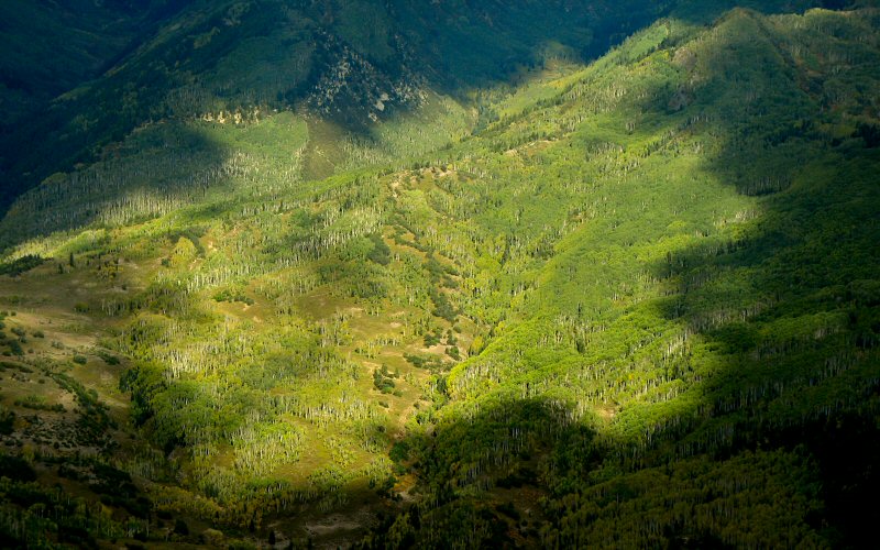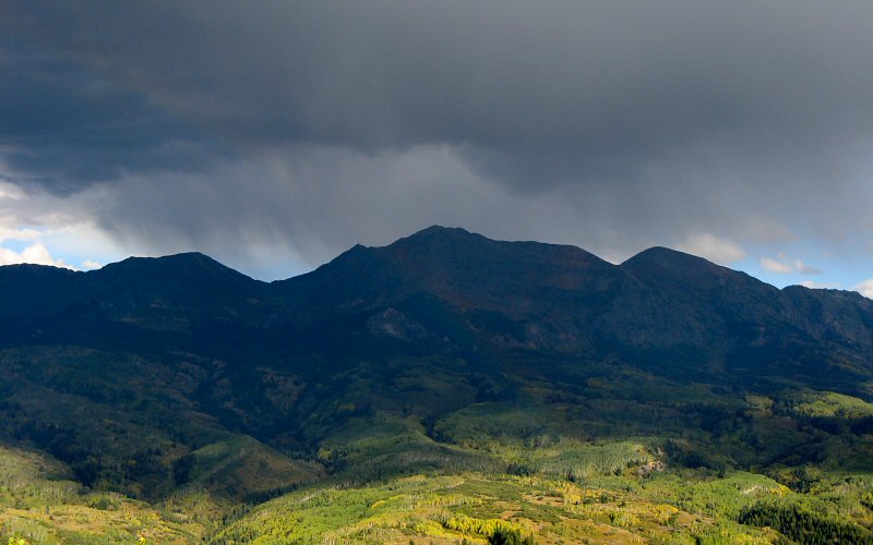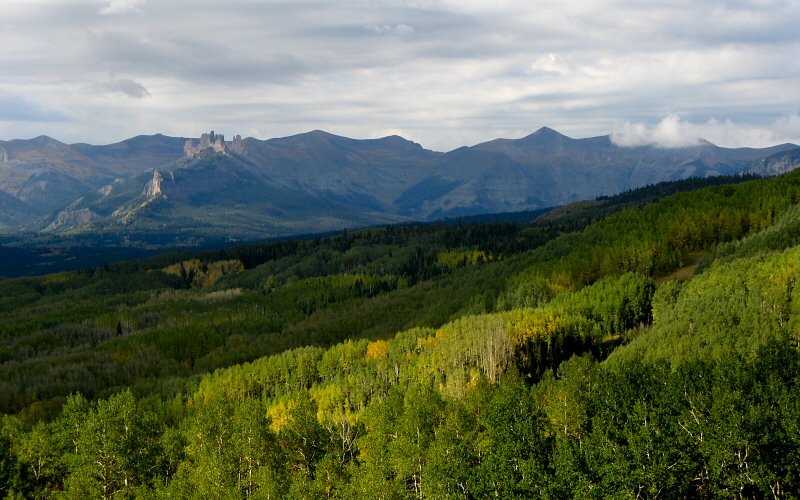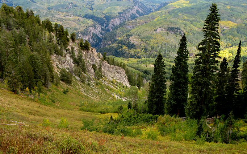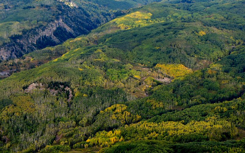 Changing aspens west of Dark Canyon as seen from Marcellina.