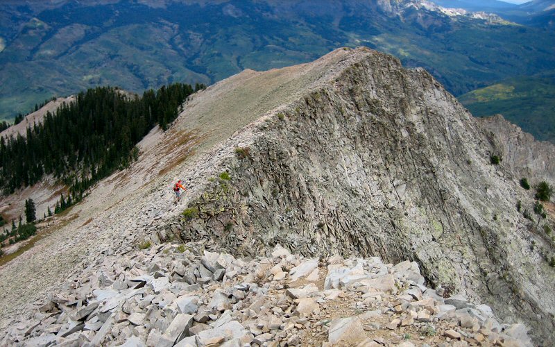 Anyway, once you get to the base of the mountain via some faint game trails, it's a long and steep climb up a couloir. After about 2,000 feet of vertical you get onto the ridge and the remainder of the hike to the summit feels like a (relative) breeze with constant panoramic views.