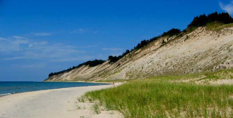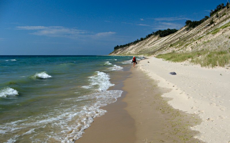 North Manitou Island offers the unique opportunity to get away from the crowds of the mainland and feel as though you have miles of pristine beach all to yourself. You'll have to put in some effort to get there though, the boat ride over takes at least 1 hour in good weather and it generally runs no more frequently than once per day. Furthermore, after you get on the island your only mode of transportation is your feet and your only food and shelter is what you carry on your back (actually, there are old abandoned orchards on the island so at some times of the year you can find apples, peaches, cherries, and blackberries).