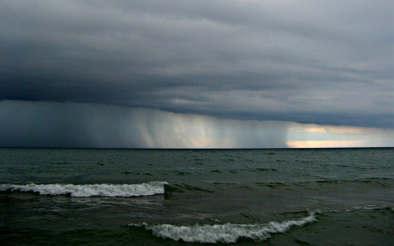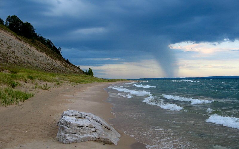 Left: Storms hitting South Manitou Island. Right: Beach rocks.