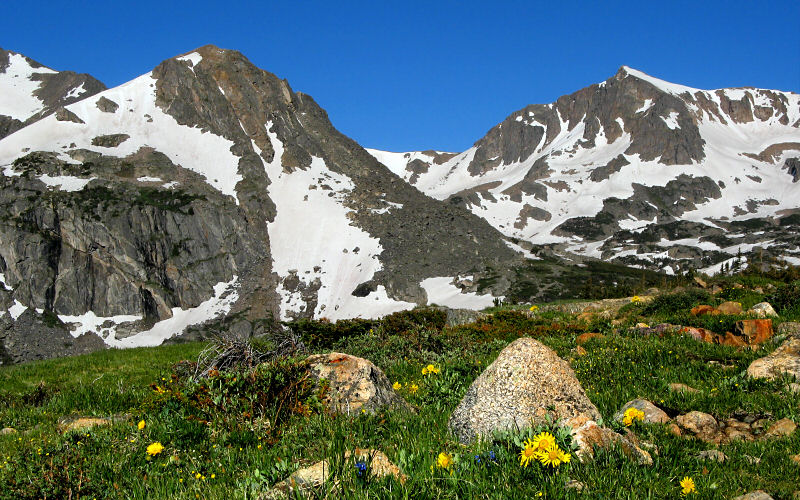 Alpine Sunflowers below Mount Jasper and Mount Neva.