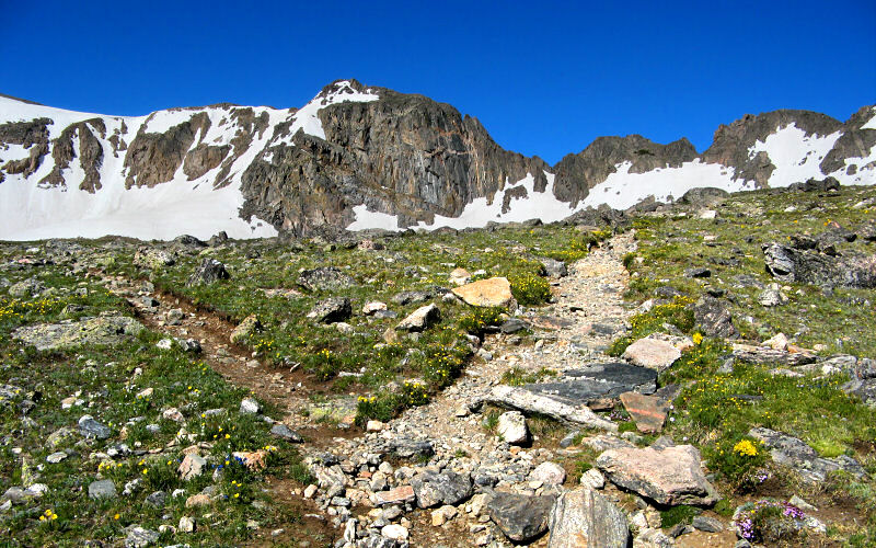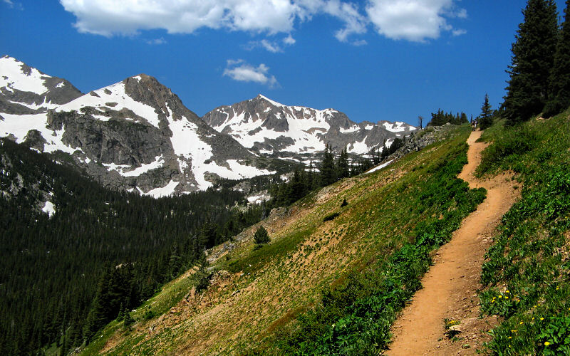Apache and Navajo Peaks from the trail to Caribou Pass.