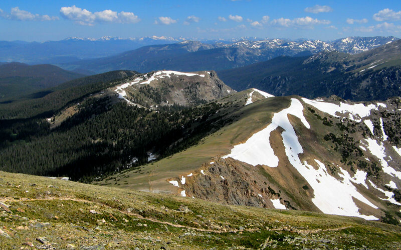 Looking off the back side of Mount Neva towards Winter Park and the very distant Gore Range.