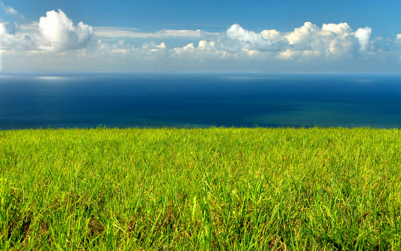 This tall grass (sugarcane) is a beautiful bright green and very common on the island. This photo was shot from hundreds of feet above the ocean on Waimea Canyon Road.