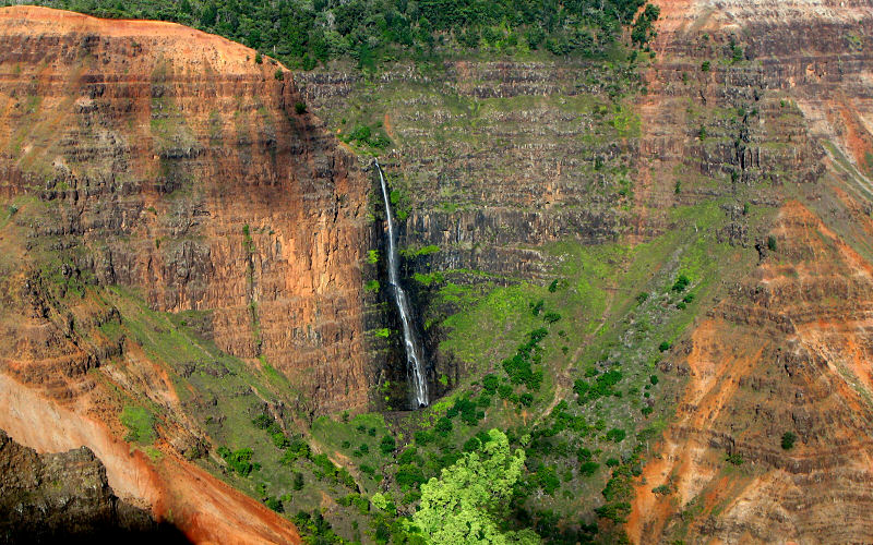 Waipo'o Falls dropping 800 feet into Waimea Canyon.