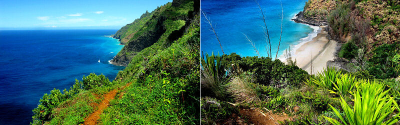 Left: Trail. Right: Hanakapi'ai Beach.