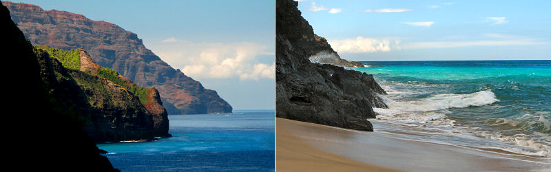Left: Distant cliffs. Right: Hanakapi'ai Beach.