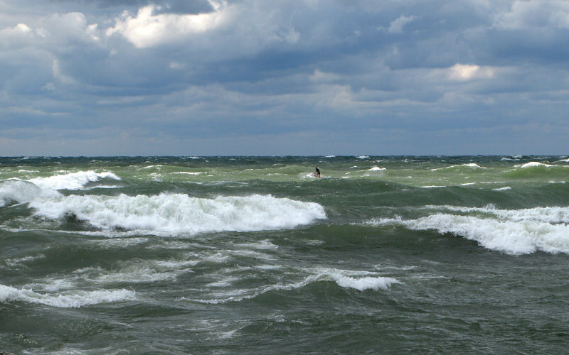 Massive waves like this were constantly rolling down the harbor.