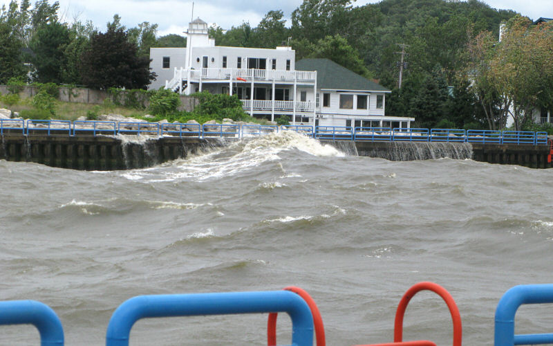 Waves rushing down the harbor.