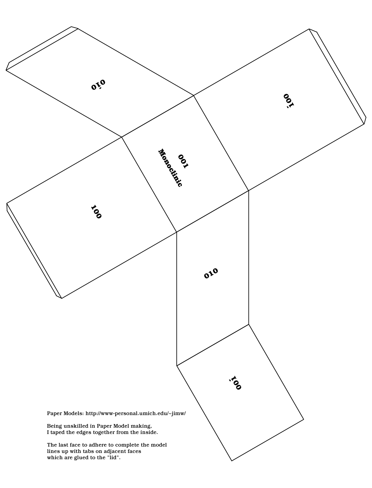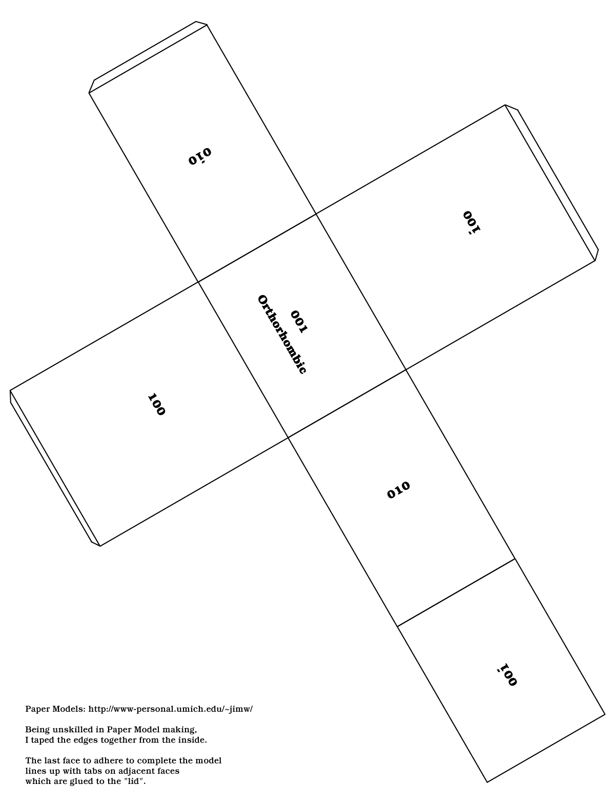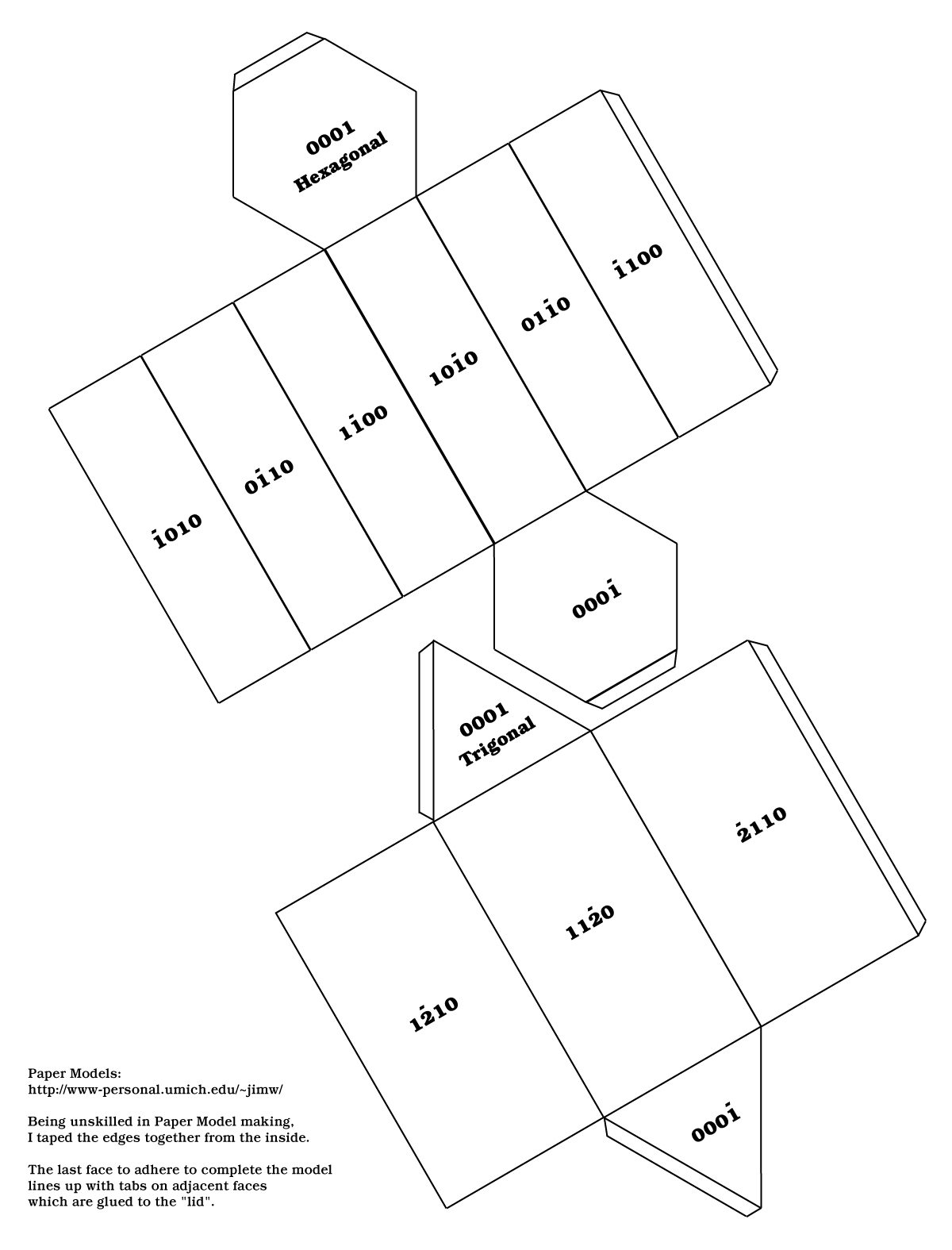 There are six, some say seven, basic crystal classes of minerals. The fundamental symmetry properties are listed below. The classes are subdivided into crystal forms. Underlying pages have paper models of these forms.