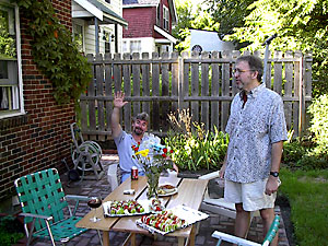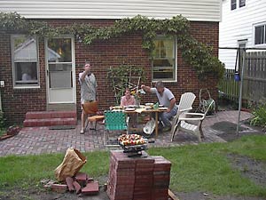 Tom arrived in time to enjoy the shake down cruise of our new patio with our first barbecue.