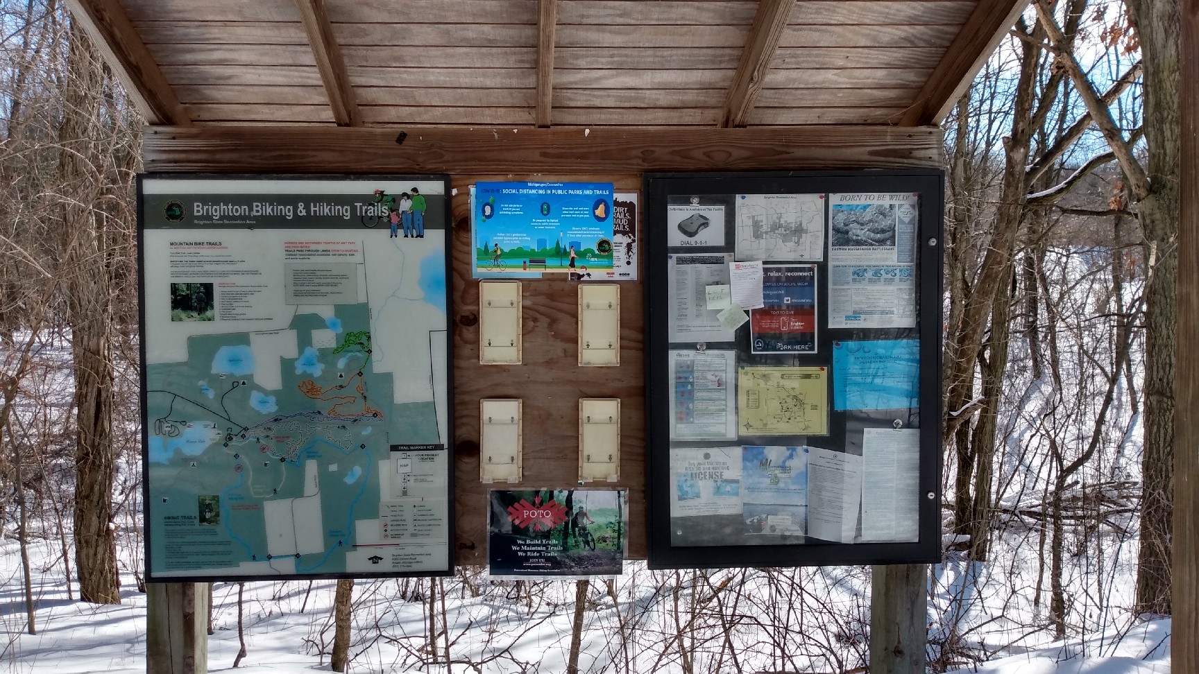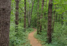 Overview: The top attraction for hikers in the Brighton Recreation Area is the fabulous Penosha Trail, a hilly 5 mile loop that takes you through dense forests of hardwoods and pine. Along the way you will also encounter ponds, wetlands, and prairie. The Kahchin Trail offers a shorter hike through this terrain and uses some of the same trail segments. It is also possible to fashion a hike that includes most of both trails.