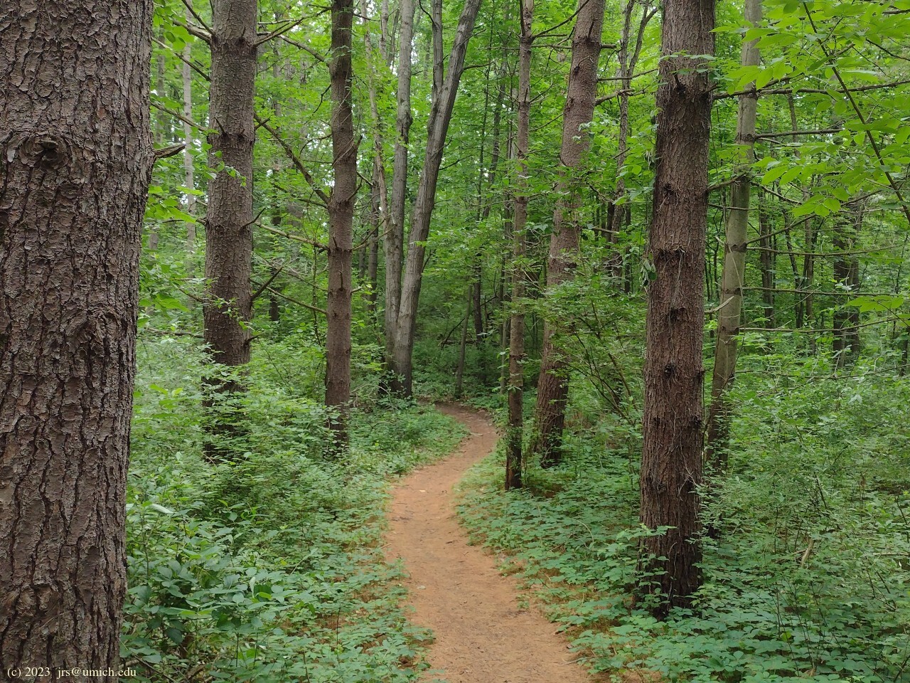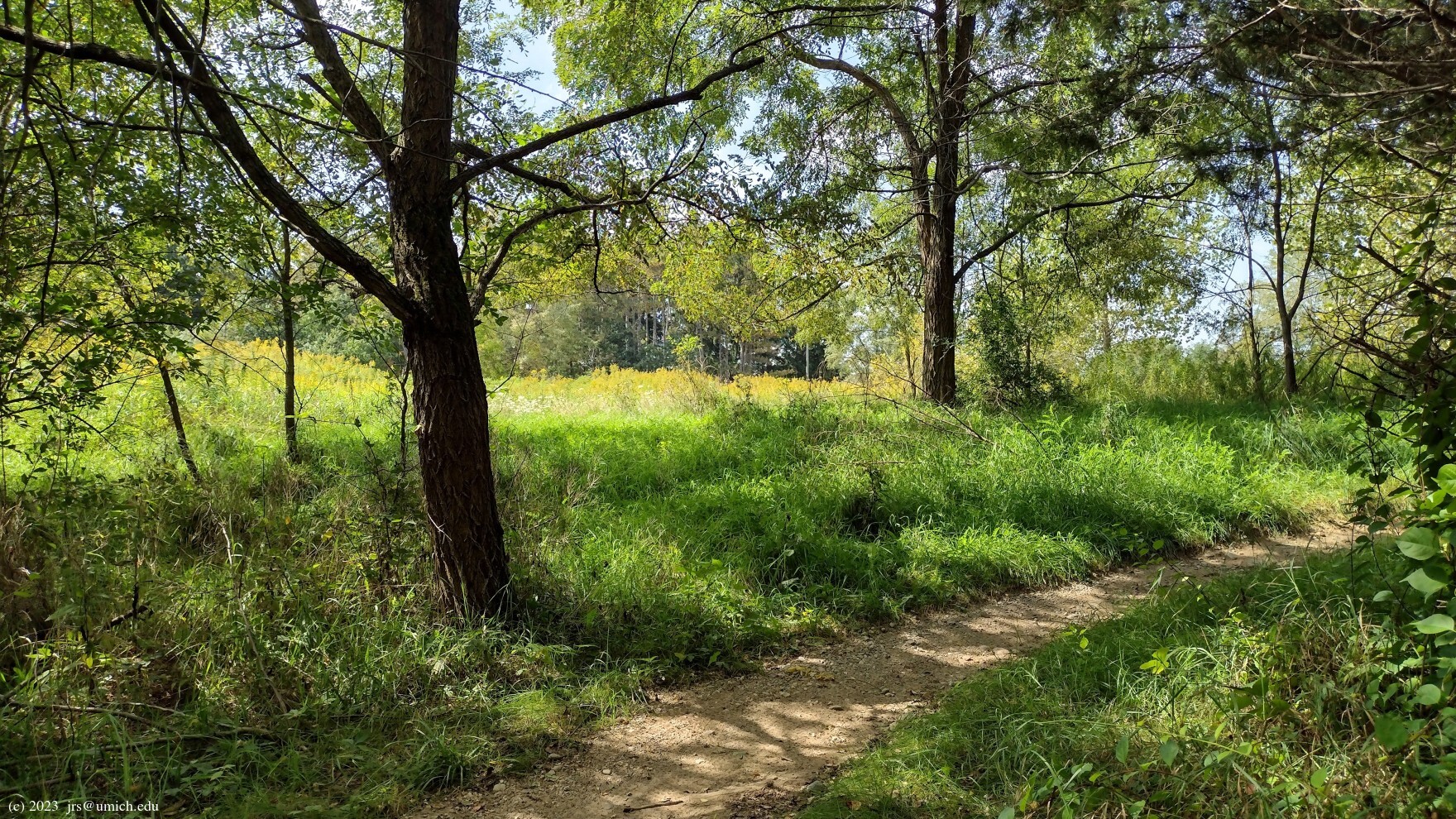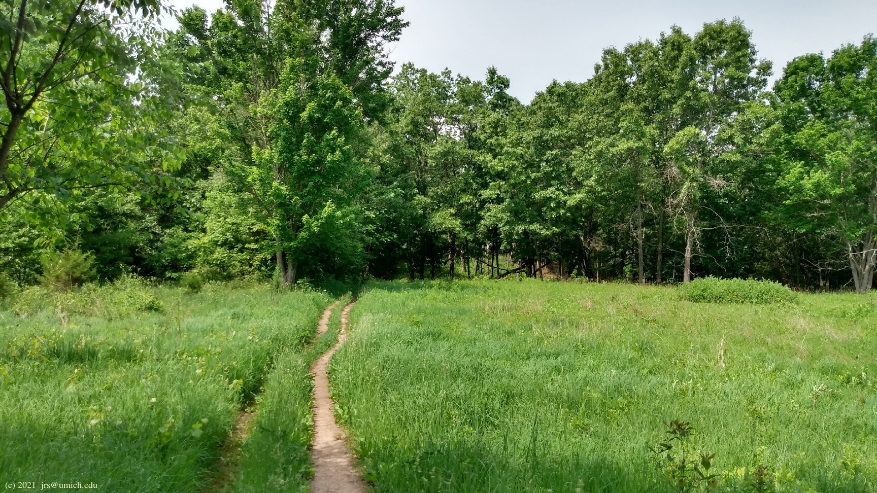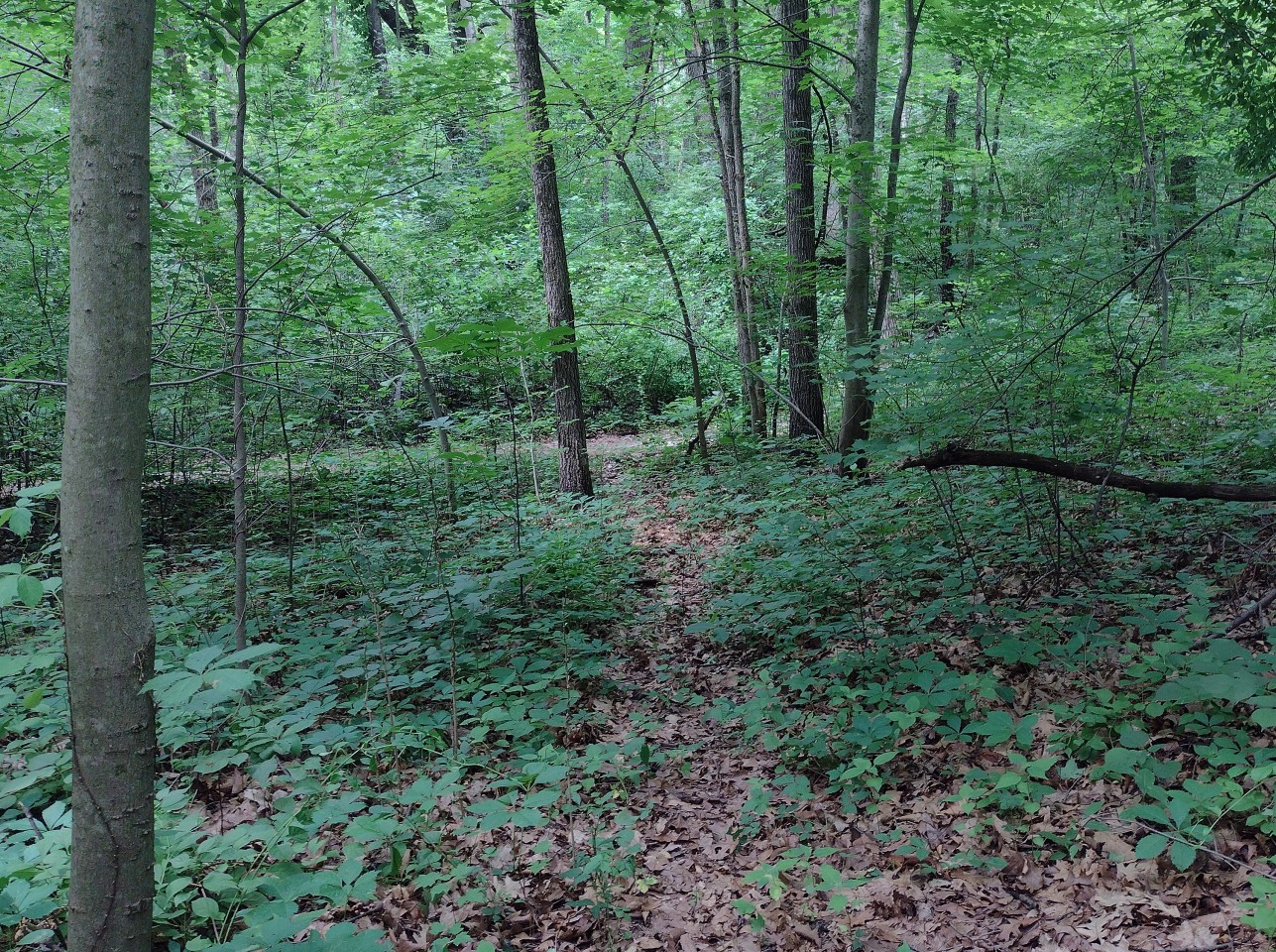 forested, aside from a brief stretch through a grassy open field. There are