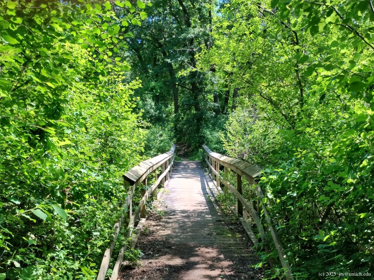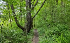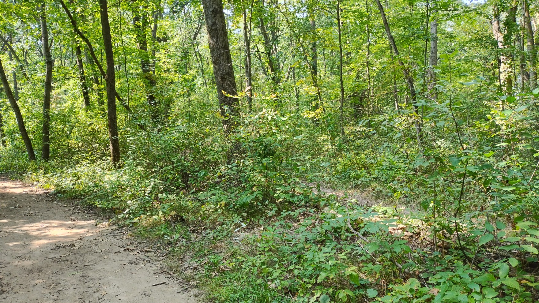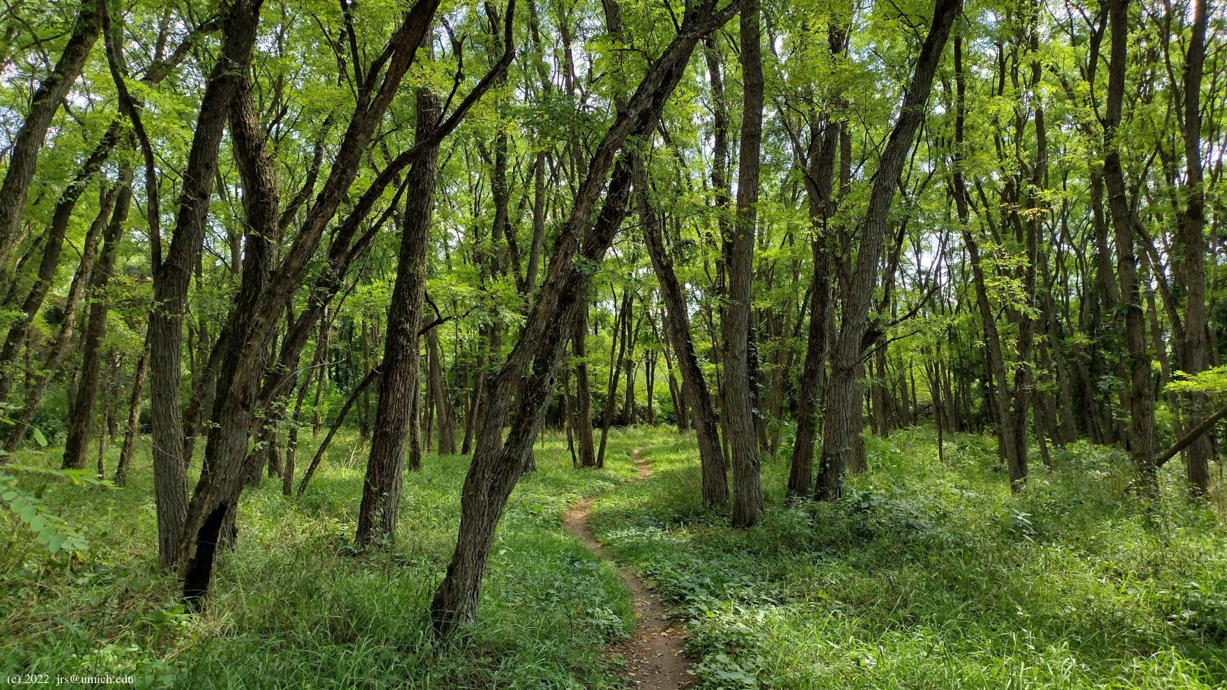 forested, aside from a brief stretch through a grassy open field. There are