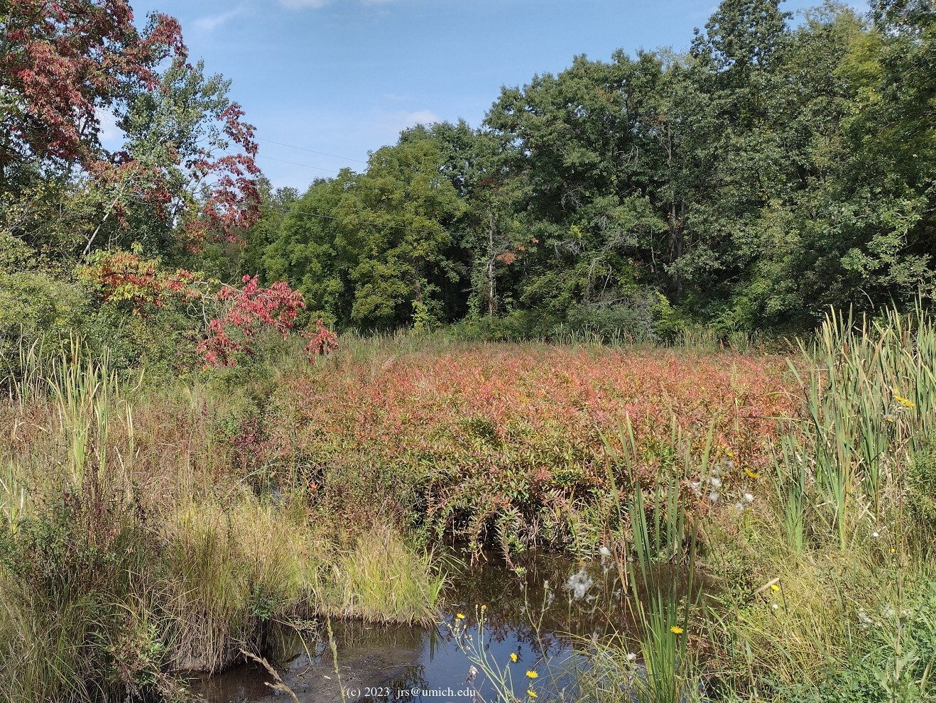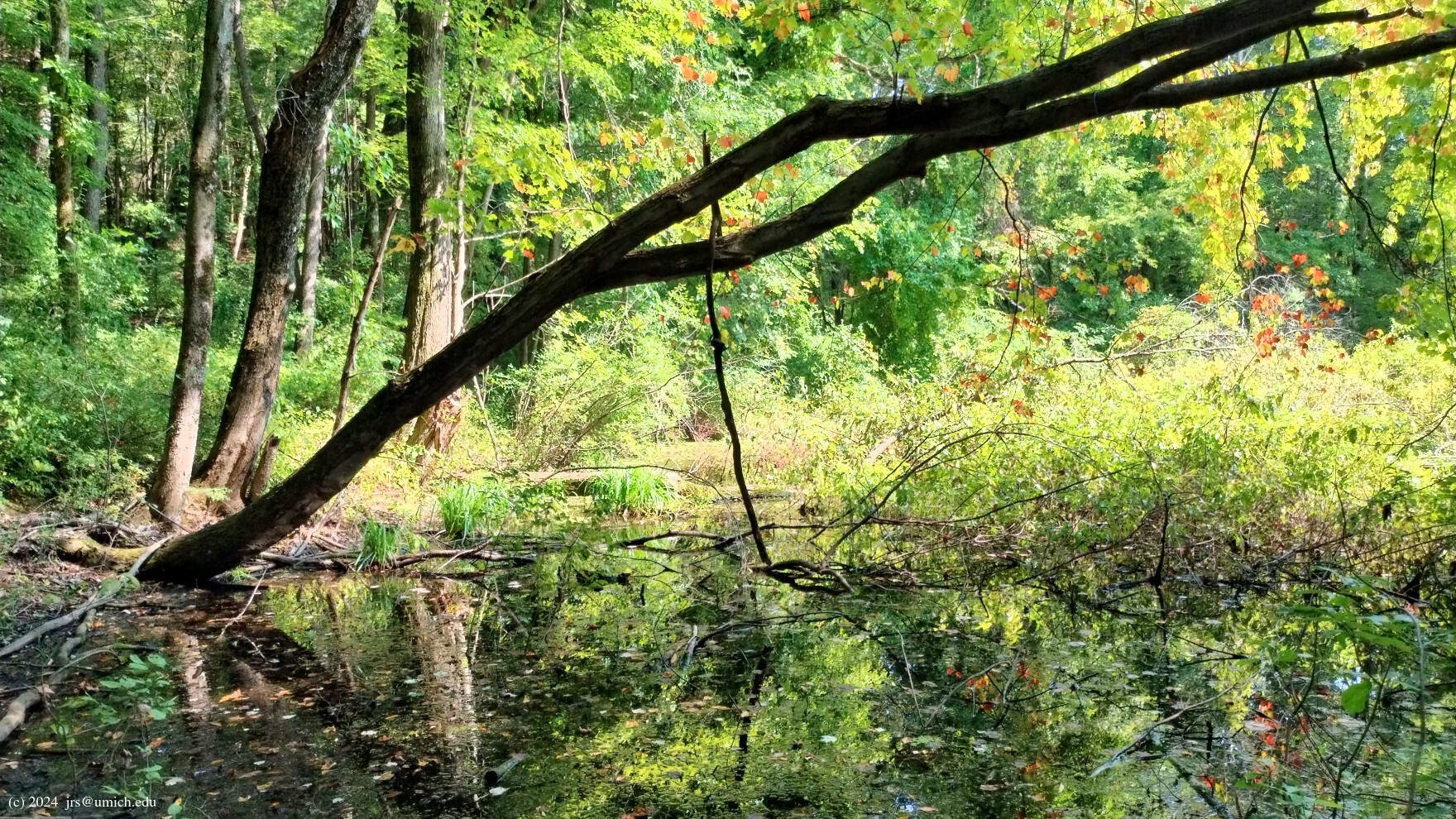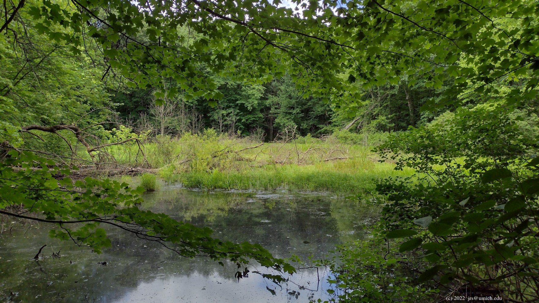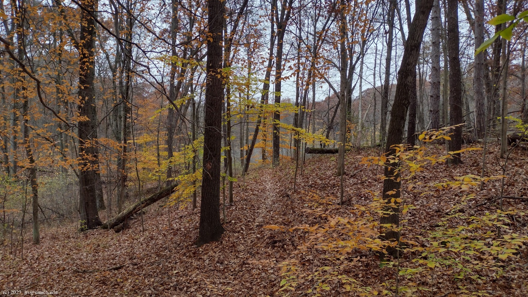 forested, aside from a brief stretch through a grassy open field. There are