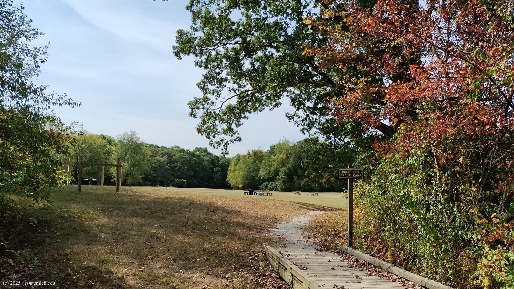 between the Three Fires Group Camp on the south side and the Bishop Lake