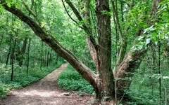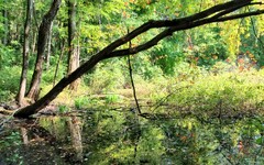 The Murray Lake Trail offers a longer trek through wooded areas with occasional wetlands and modest hills. There are glimpses of Reed Lake and Murray Lake along the way. As a mountain bike trail it is rated "intermediate", but for a hiker I would still consider it easy. While the up and down hilly segments are numerous, they each involve changes in elevation of less than 50 feet. It has a few more twists and turns than the Appleton Trail, but not enough to mar the experience for hikers.