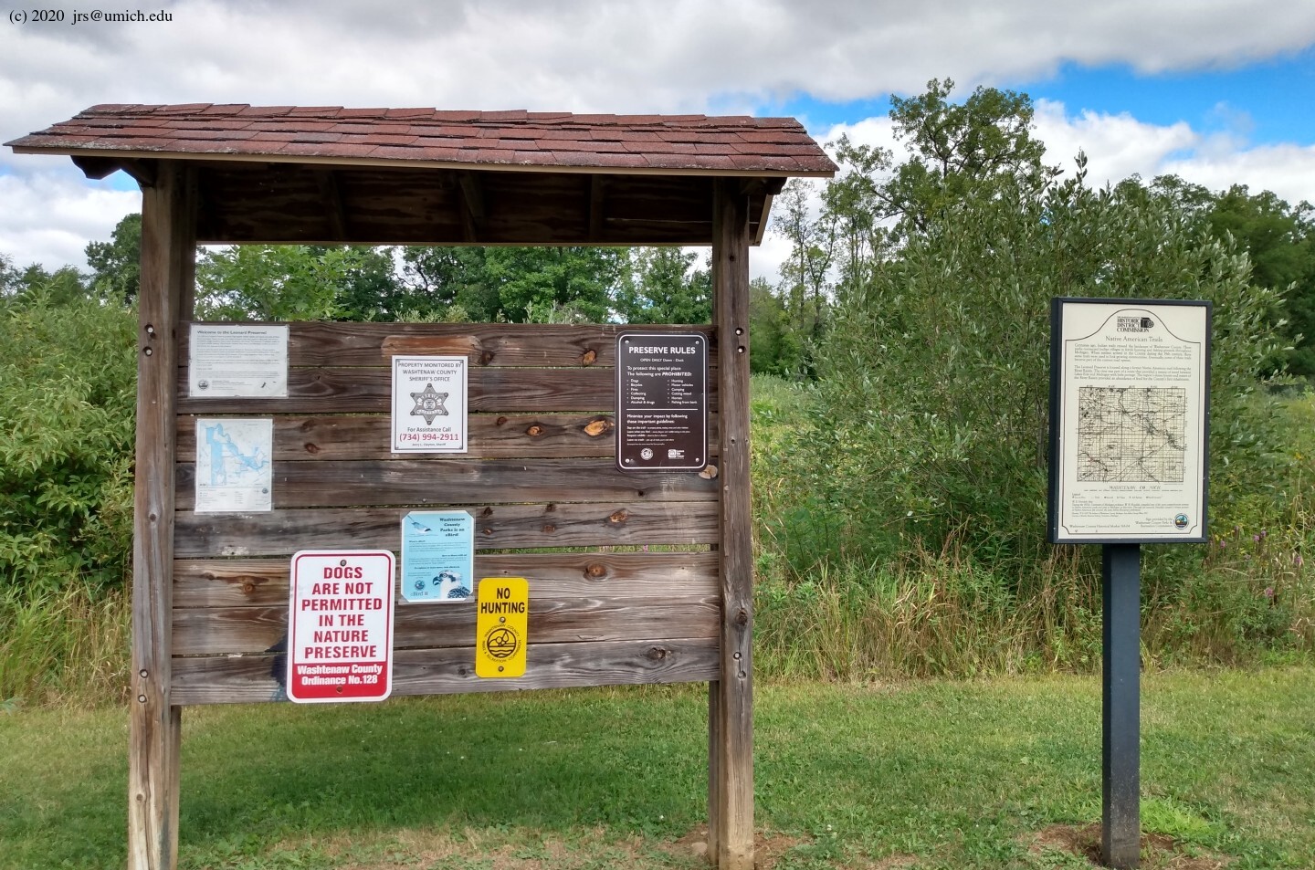 Directions: Head west on I-94. Take Exit 159 in Chelsea, and continue south on M-52 for about 10 miles to Manchester. Turn right (southwest) on Main Street, and park in the downtown area if you plan on walking in along the shared-use trail. Otherwise, continue on Main for 5 blocks, then right (northwest) onto Union Street. Veer left at the fork so that you stay on Union. If you see the "Dead End" sign, you'll know you're on course. This dead end takes you directly into the preserve; look for the small parking lot about 1/4 mile down the road. It will be on your right.