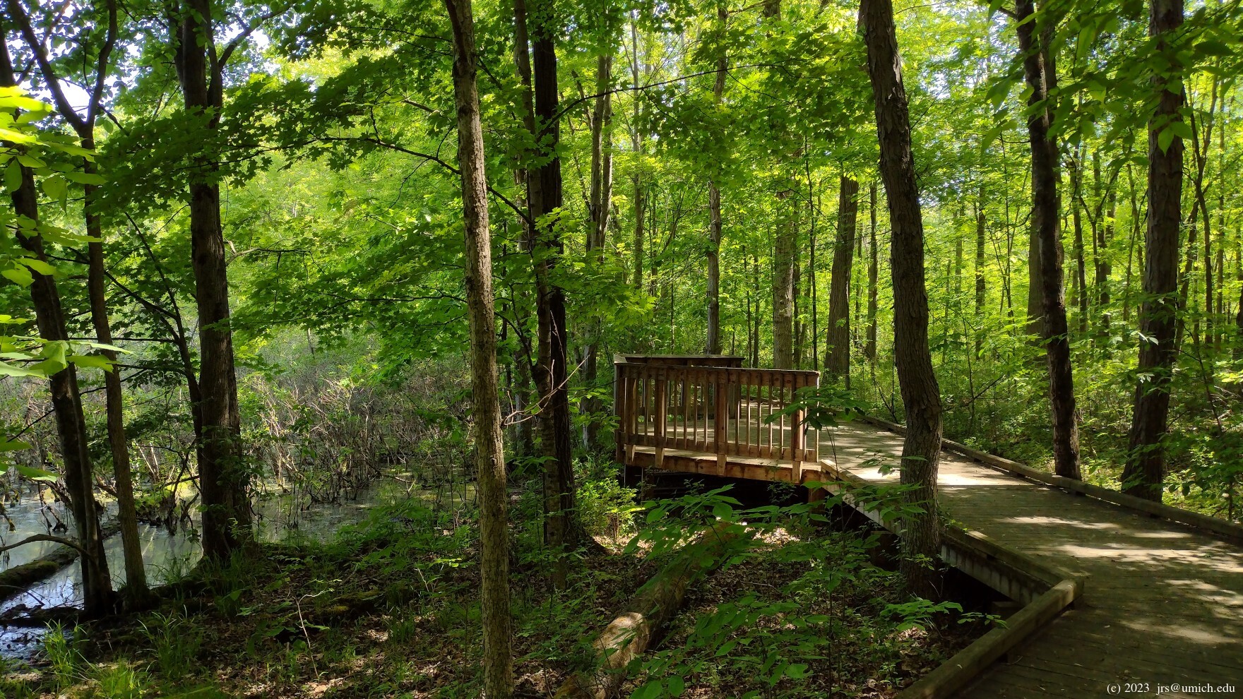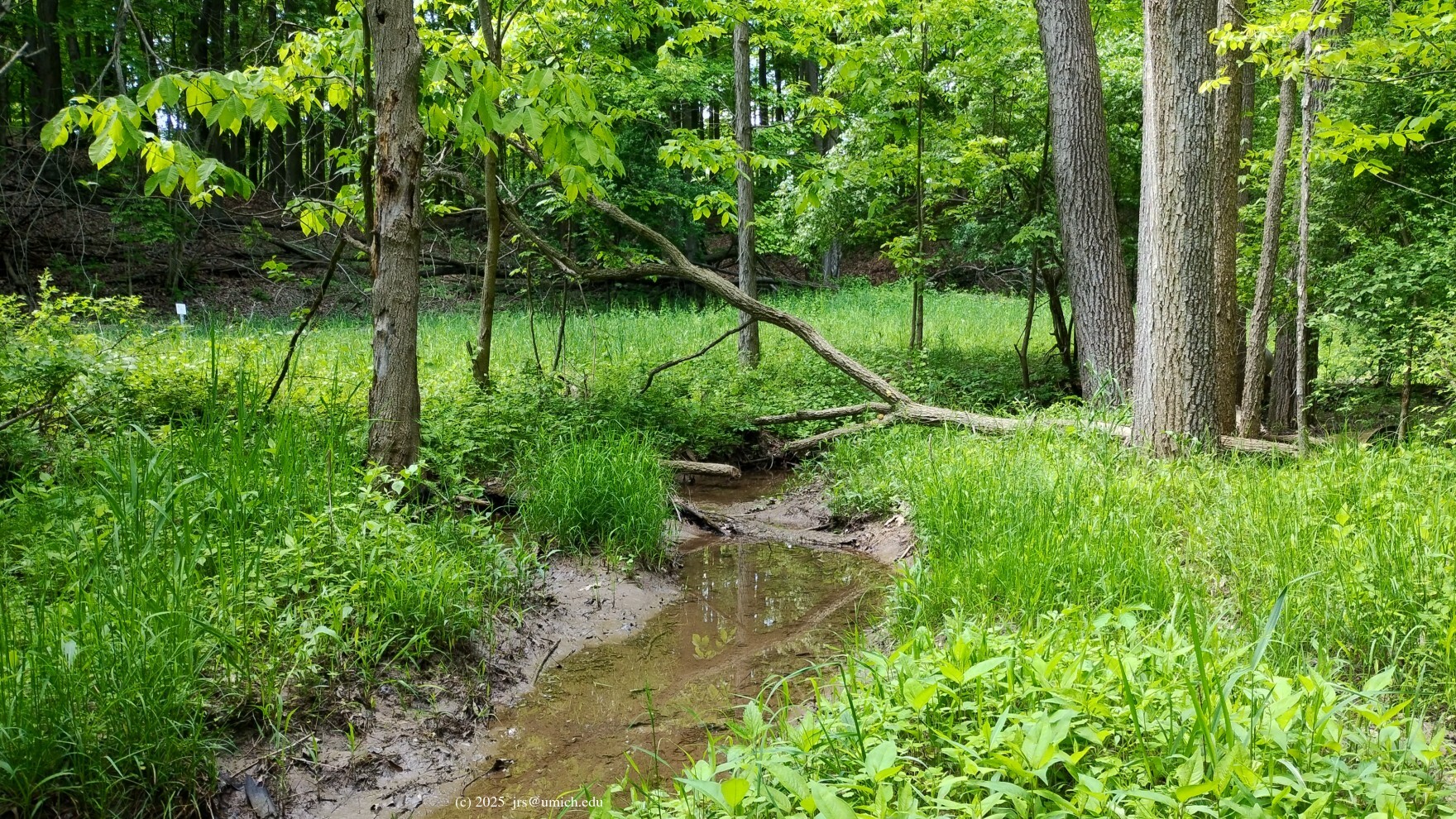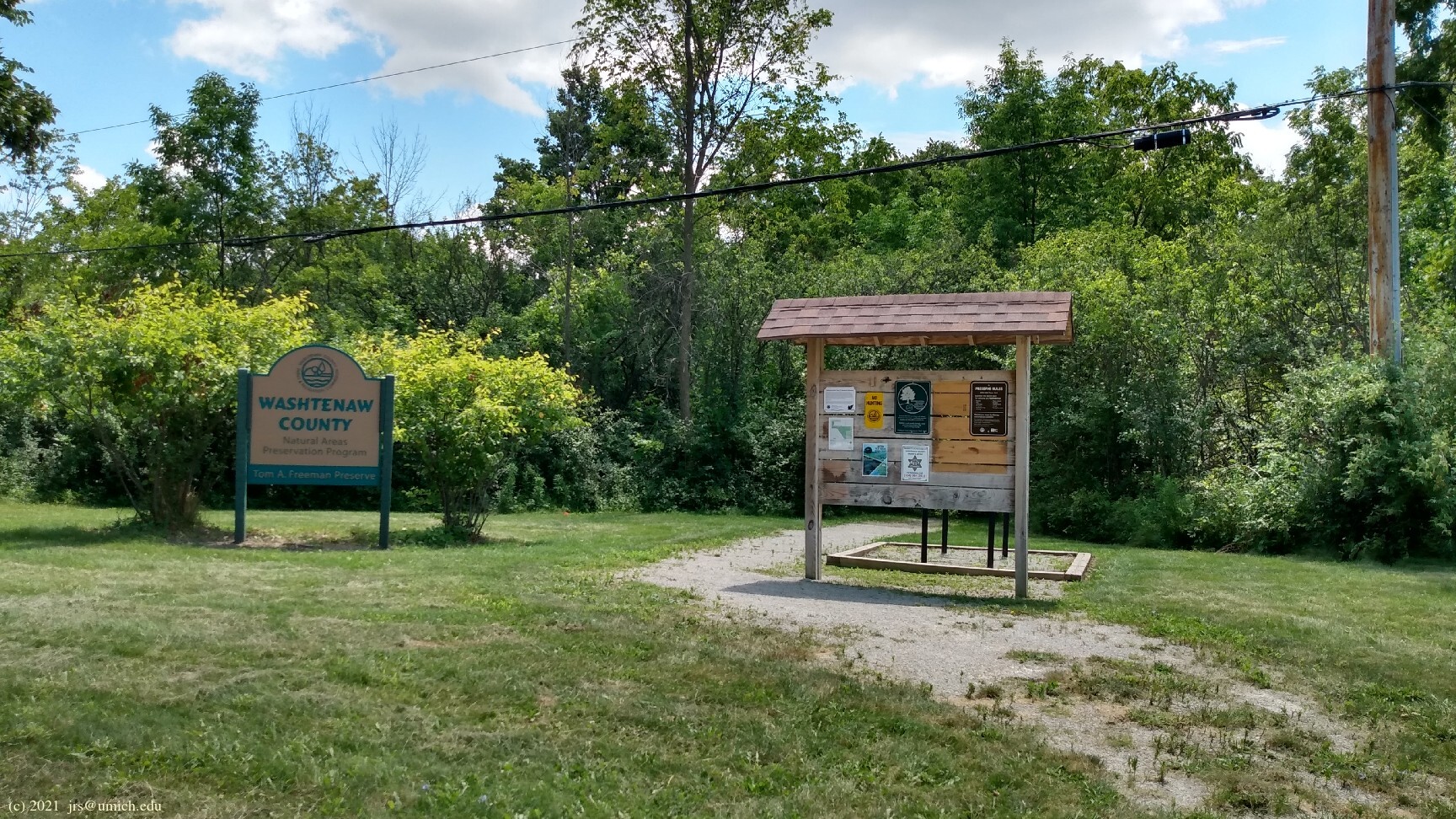 The Freeman Preserve is mainly forested, with many beautiful mature trees, and has considerable topographic variation. Some wetlands and Kirk’s Brook, a tributary of Fleming Creek, flows through it. The Freeman Preserve's trails are connected to the trails in City of Ann Arbor's neighboring Marshall Nature Area.