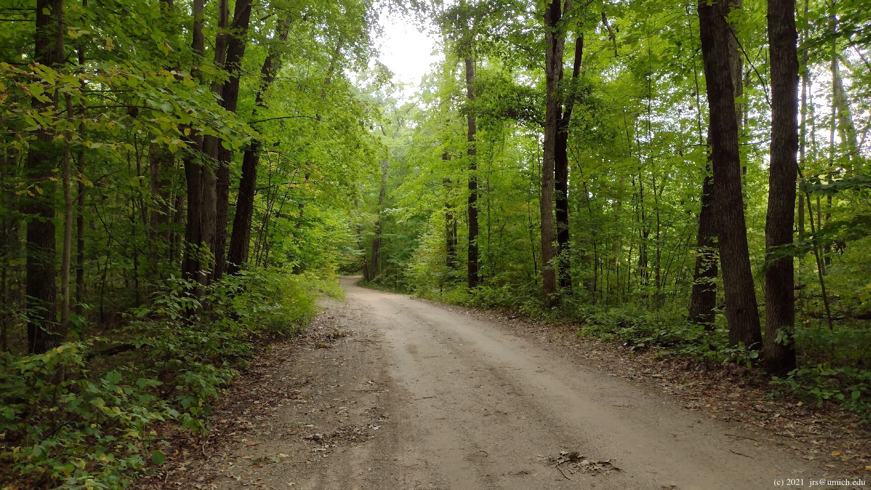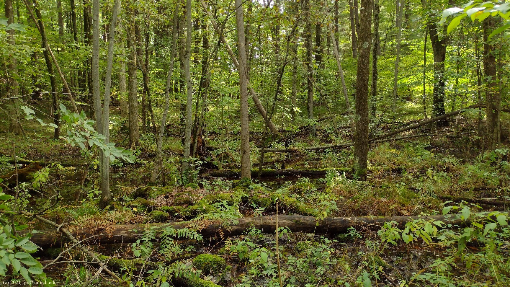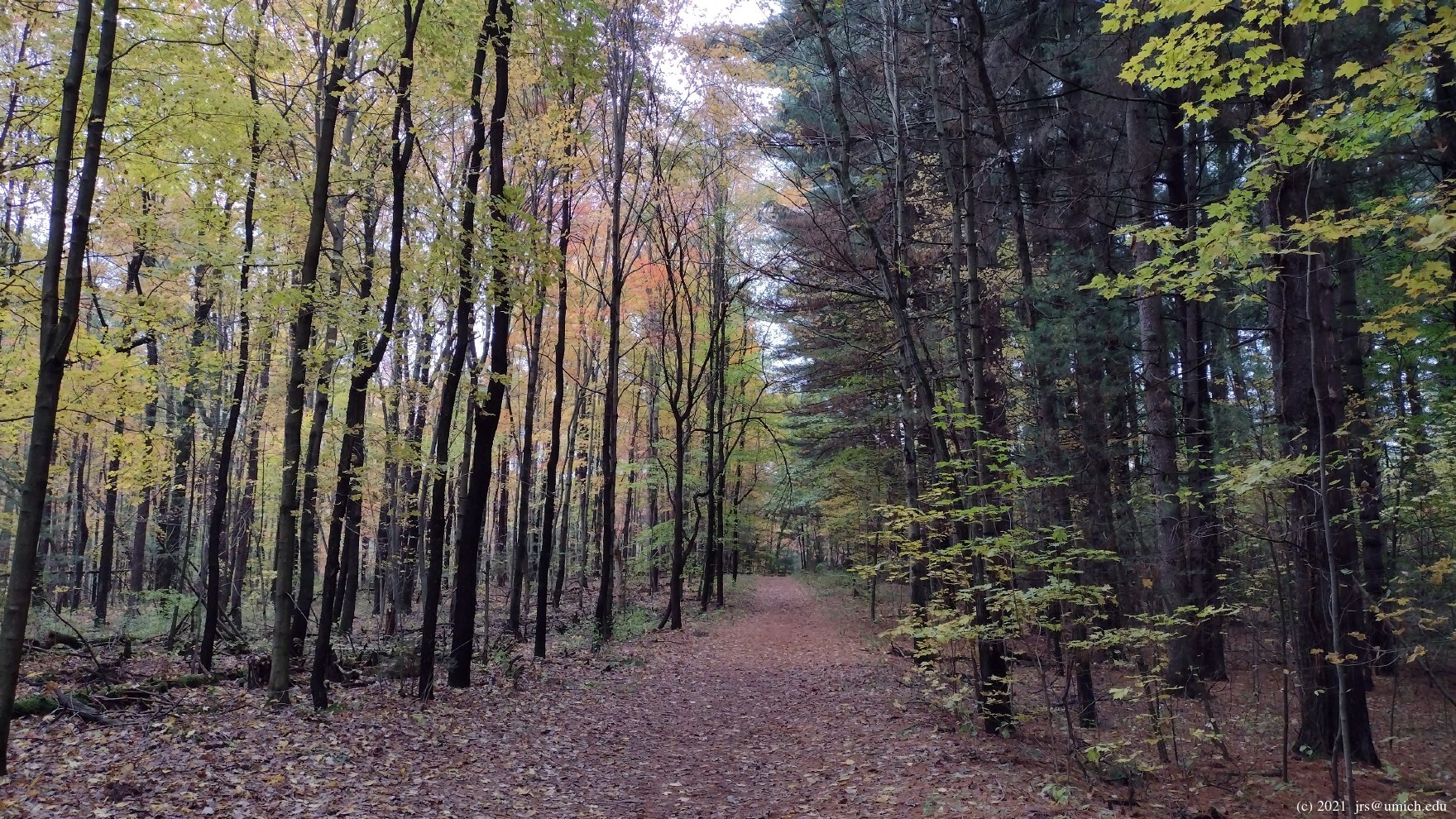a long gentle climb through dense woods, gaining 200 feet in elevation