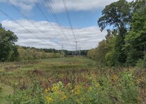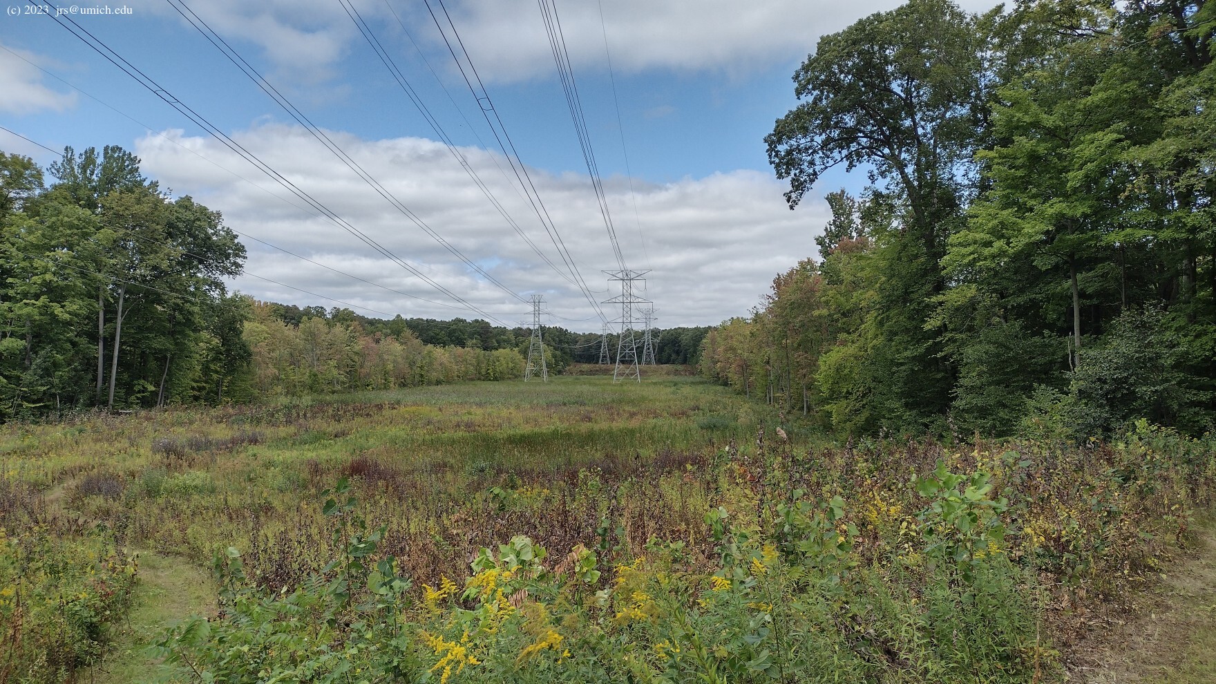 south underneath the power lines, ending at the shore of Proud Lake. The