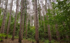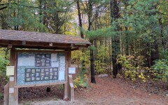 Leashed dogs are allowed on the hiking trails, but bikes and horses are not.