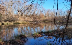 The topography east of Wixom is relatively flat -- the difference in elevation between the highest and lowest points on the trail network is less than 30 feet. Given the proximity to several bodies of water, it should therefore come as no surprise that you may find mud or even flooding on the trails at any time. For example, during one visit, the passage between Markers 10 and 18 along the Huron River was challenging, and between Markers 21 and 22 on the Chief Pontiac Trail, there was a section of boardwalk submerged under 3 inches of standing water. For winter hikes, you might need ice cleats.