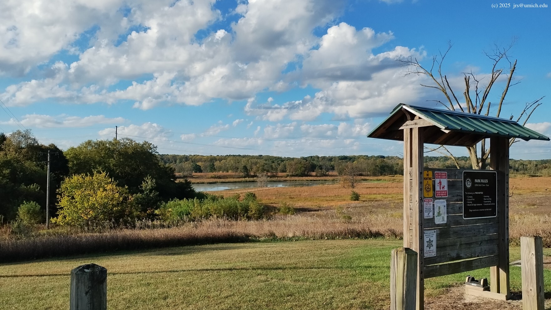 Directions: Head west on I-94, then south on M-52 near Chelsea (Exit 159). The first traffic light you encounter will be 7.5 miles later at Pleasant Lake Road. Turn right (west) onto Pleasant Lake. After 3.25 miles, precisely at the point where Pleasant Lake veers to the south and becomes Sharon Hollow Road, you have three options, depending on where you want to park: