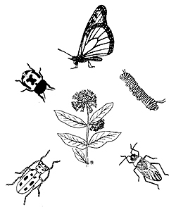 The insects feed on the milkweed which is toxic to most animals due to cardiac glycosides. These insects have evolved resistance to the cardiac glycosides and are actually able to accumulate them in specific parts of their body (aposomatic). This provides them with some protection and they are brightly colored to warn potential predators. Interestingly, cardiac glycosides accumulated by the monarch butterfly caterpillars are passed along through metamorphosis to the butterfly