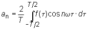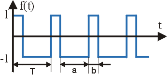 1. Let us consider meander with angular frequency w as it is shown in the figure (where a=b=T/2). This function is expanded in a series: