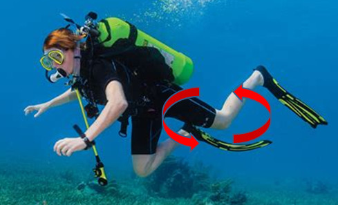 Visualizing Proper Kick). Typically, a poor kick (often from leg-fin mismatch) will appear as if the diver were riding a bicycle (a circular motion about the knees ... hence its name, the "bicycle kick" see below). This is extremely inefficient and