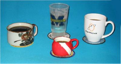 As a newbie diver, I received a patch with almost every dive class I completed. I store my patches in the basket I made while submerged to earn my Underwater Basket Weaving certification. Patches make superb coasters! |