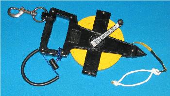 Fabric rulers typically are found in 60" and 120" lengths. The 60" rule is typically used as is, but the longer 120" rule may become cumbersome at depth. So, our 120" rules are wound on a spool (construction of these is found in Measuring Distances). Metal rulers are typically one foot or three foot stainless steel. We added small carabineers to allow them to be attached to a deployment line and wrist lanyards to facilitate maintaining possession of the ruler during the dive. A large non-climbing carabineer makes a convenient means of storage as well as for dropping the rulers into the water via our deployment line.