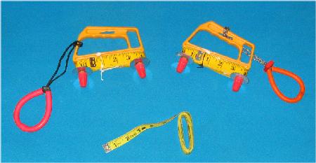 Creating an map/chart/image of an underwater site involves an enormous amount of time taking and recording measurements. Anything that has a waterproof, readable scale can be used. The most common measuring tools are fiberglass tape measures (from quilt or fabric shops), stainless steel rulers, and fiberglass surveying tapes.