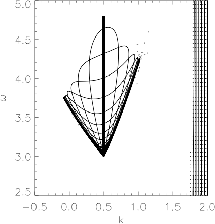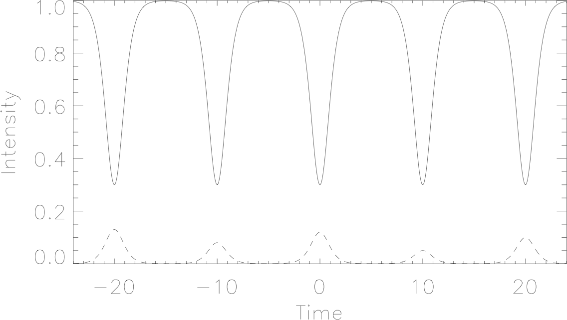 Prof. Miller has also studied excitations in the arrays that are not localized, but rather are extended over many cores of the array. The description of these excitations was carried out at the University of Arizona in joint work with M. H. Hays and C. D. Levermore. In more recent work with Ole Bang, Prof. Miller has carried out a detailed study of the extended excitations in waveguide arrays in which the nonlinearity is second-order rather than third order. Less power is required to excite the second-order nonlinear response, but this power is shared between two frequencies: a fundamental and a second harmonic. This makes the second-order system more interesting.