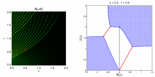 We present a detailed analysis of the solution of the focusing nonlinear Schrödinger equation with initial condition ψ(x,0)=Nsech(x) in the limit N→∞. We begin by presenting new and more accurate numerical reconstructions of the N-soliton by inverse scattering (numerical linear algebra) for N=5, 10, 20, and 40. We then recast the inverse-scattering problem as a Riemann-Hilbert problem and provide a rigorous asymptotic analysis of this problem in the large-N limit. For those (x,t) where results have been obtained by other authors, we improve the error estimates from O(N-1/3) to O(N-1). We also analyze the Fourier power spectrum in this regime and relate the results to the optical phenomenon of supercontinuum generation. We then study the N-soliton for values of (x,t) where analysis has not been carried out before, and we uncover new phenomena. The main discovery of this paper is the mathematical mechanism for a secondary caustic (phase transition), which turns out to differ from the mechanism that generates the primary caustic. The mechanism for the generation of the secondary caustic depends essentially on the discrete nature of the spectrum of the N-soliton. Moreover, these results evidently cannot be recovered from an analysis of an ostensibly similar "condensed-pole" Riemann-Hilbert problem.