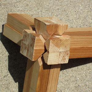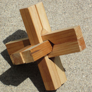 Larry and I developed a set of simultaneous wood working joints about 20 years ago but never got around to documenting our work until now. We were inspired by a puzzle piece that had an intersection of three pairs of symmetrical elements. The puzzle was fascinating to look at but unfortunately it had very little structural value. It occurred to us that if we could build more structure into the design that it could be a true wood working joint.