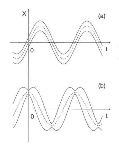 (b) A single-mode photon squeezed state |aexp(-iwt), x(t)>, where the squeezing factor x(t) satisfies x(t) = rexp(-2iwt). Here, <X> = w|a|coswt, which means that a is real, and its fluctuation is