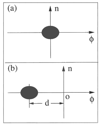 Schematic diagram of the uncertainty area in the phase difference and charge number (f, n) phase space of