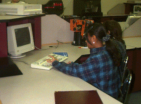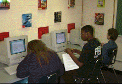 We offer four different computer classes at Edmonson and they are: Computer Awareness which is required for all sixth graders it reinforces the computer knowledge they have learned in there elementary school, like Macintosh Basics, keyboarding, word processing, computer literacy, drawing and the use of graphics in documents. The seventh and eight graders can choose Computer Applications which covers HyperStudio (a program that encourages students to think on their own and design something that can be used by others), Print Shop, Integrated Software (word processing, data base, spread sheet & communications), as well as adding clip art sound and graphics to other applications. They can also choose Computers and Technology where students learn to use a scanner, a video camera, a still video camera and several other multimedia presentation pieces of equipment to make Quick Time movies or design presentations to add to their word processing documents. Advanced Computer where students can apply all previously learned information into an independent study course of their choice using computers and technology.