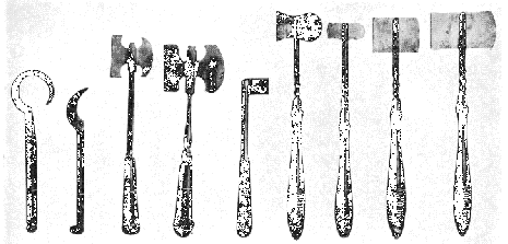 Photo of Sir William Hey's own saws, made for him in 1803, from which all later "Liston's knives"