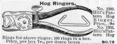Illustration from 1897 Sears Roebuck Catalogue (p. 45) illustrates a not dissimilar style of hog ringer, along with some rings.