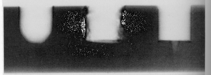 Marks left by three kinds of boring tools: a spoon bit (left),